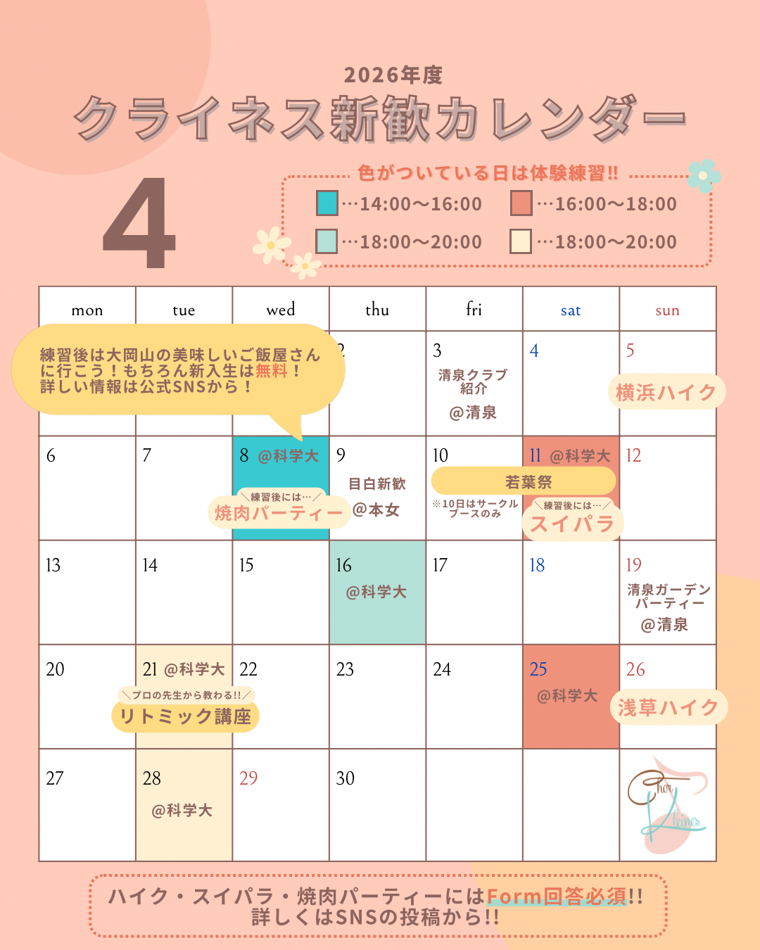 どのハイクも新入生どうしや先輩と仲良くなれるチャンスです♪